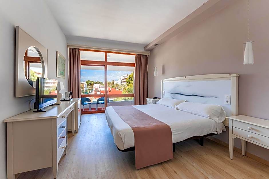 This room has street view. A/C is centrally controlled. Safe on charge. Free WI-FI and mini fridge.